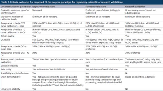 16. Lee J, et al. Fit-for-purpose method development and validation for successful biomarker easurement. Pharm. Res. 23(2), 312¨C328 (2006).
